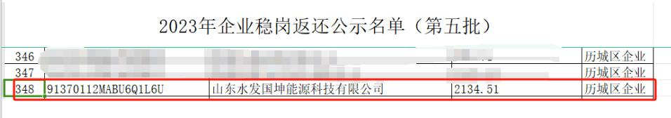 水發(fā)國坤公司入選濟南市歷城區“2023年企業(yè)穩崗返還公示名單”