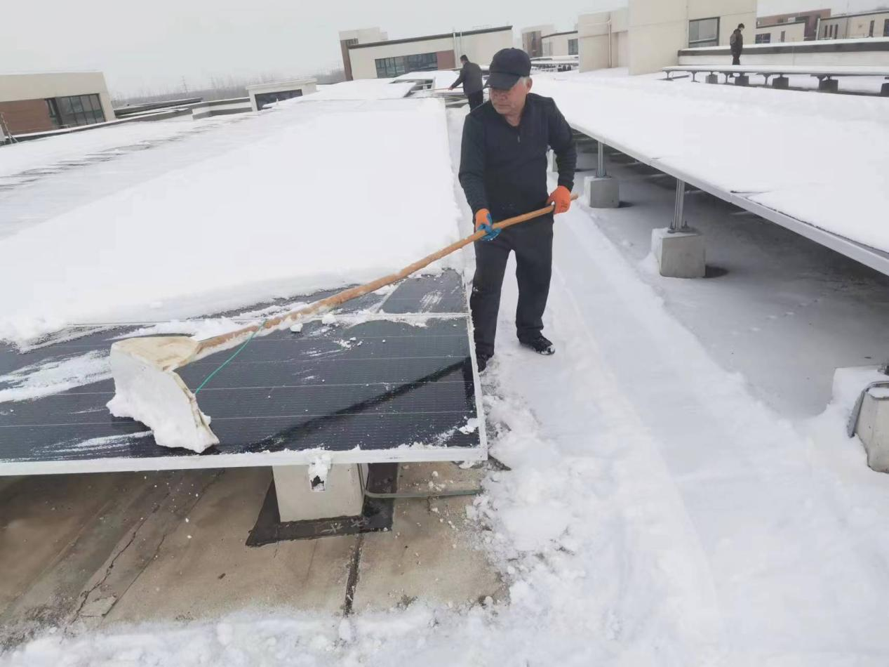 應對雨雪冰凍災害 水發(fā)龍能公司中歐智造港4MW分布式光伏發(fā)電項目開(kāi)展積雪清掃工作