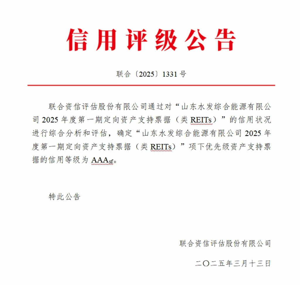 捷報!山東水發(fā)綜合能源有限公司類(lèi)REITs融資取得突破性進(jìn)展