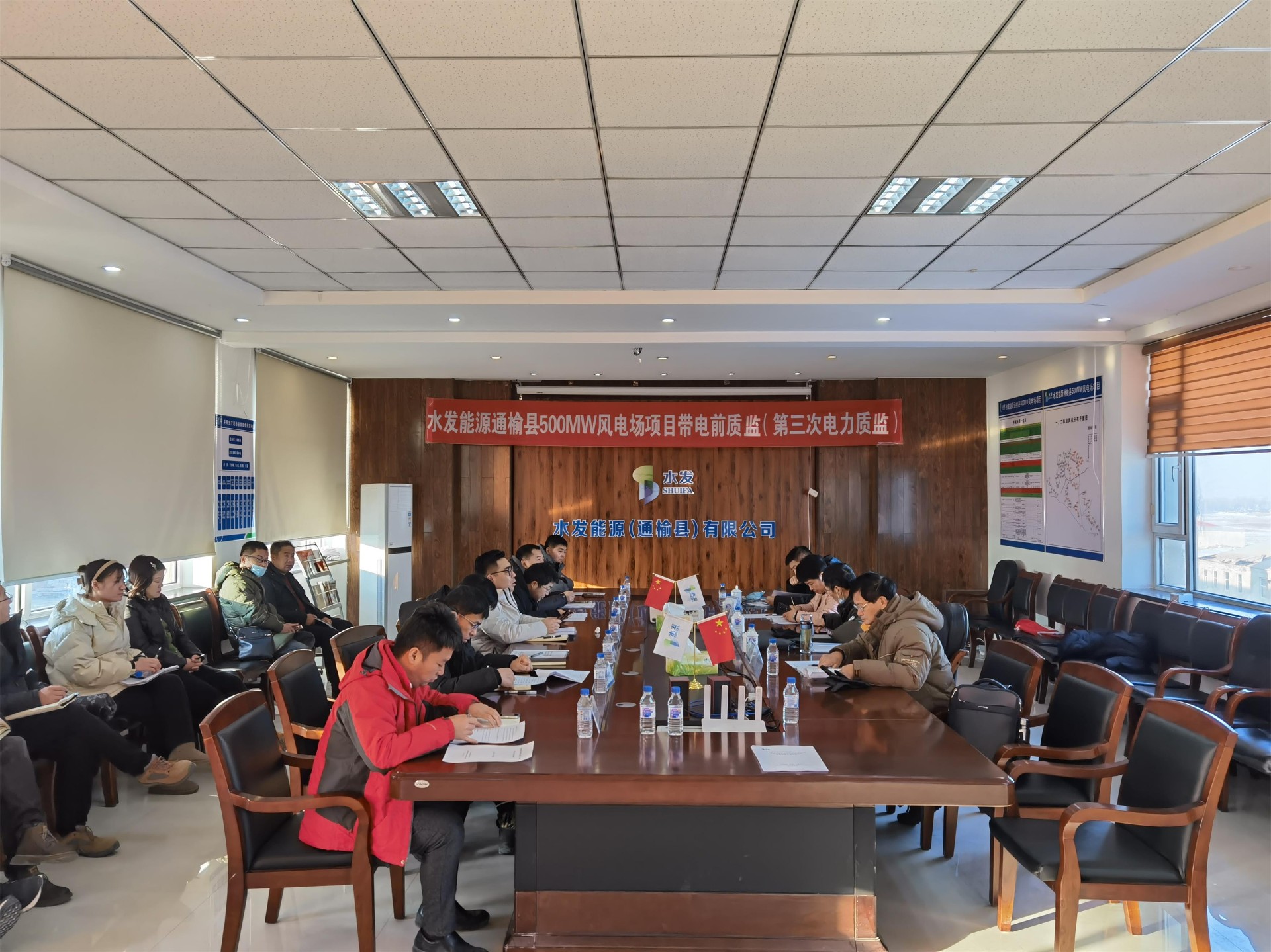 12月23日,可再生能源發(fā)電工程質(zhì)量監督站專(zhuān)家組蒞臨水發(fā)能源通榆縣500MW風(fēng)電場(chǎng)項目,開(kāi)展升壓站受電暨首批風(fēng)電機組啟動(dòng)試運前質(zhì)量監督檢查工作。水發(fā)能源通榆公司、設計單位、監理單位、總包單位及各施工單位積極配合檢查。